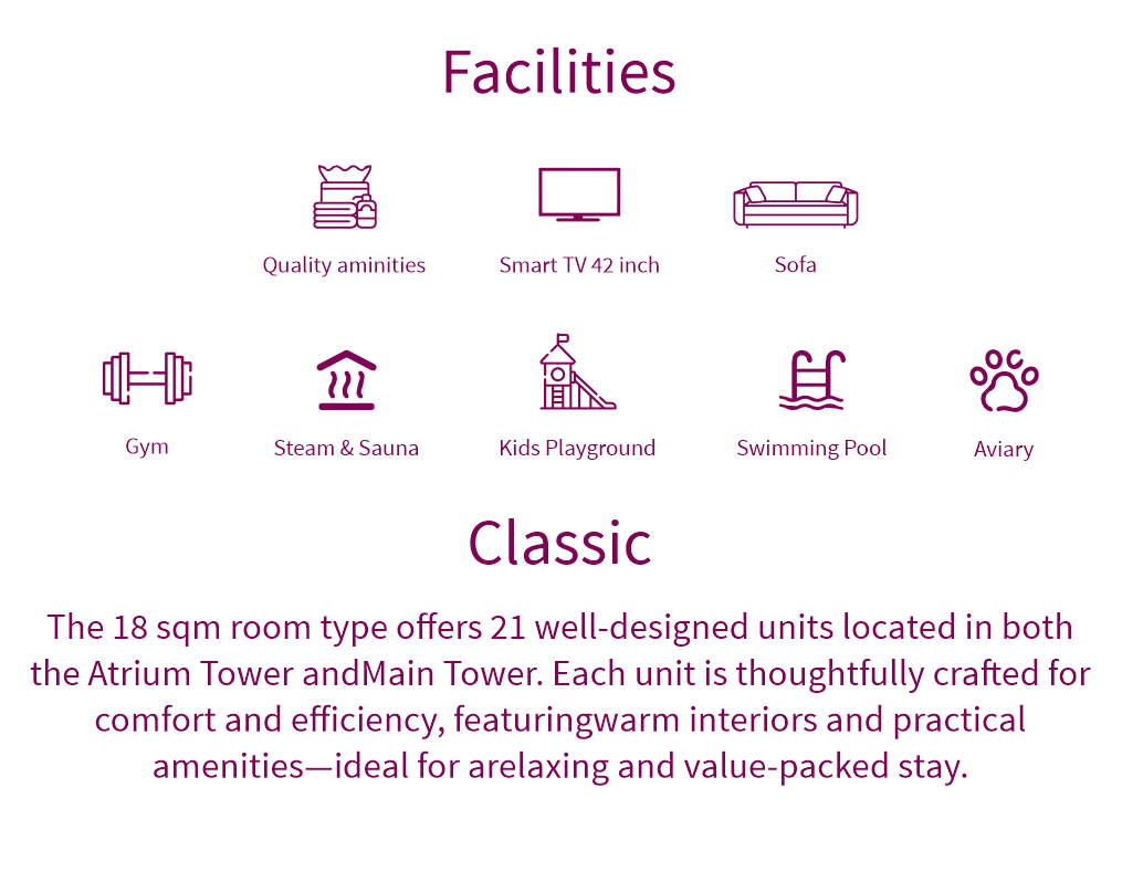 18 SQM | KING OR TWIN | ROOM AVAILABLE : 21 ROOMS