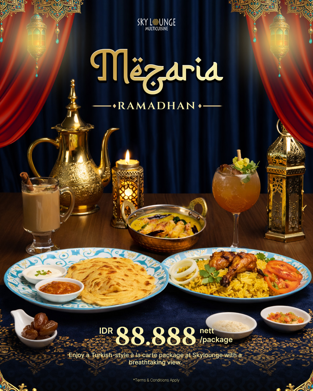 Iftar praktis dan lengkap dengan menu TurkishโMiddle Eastern di Skylounge Multicuisine.