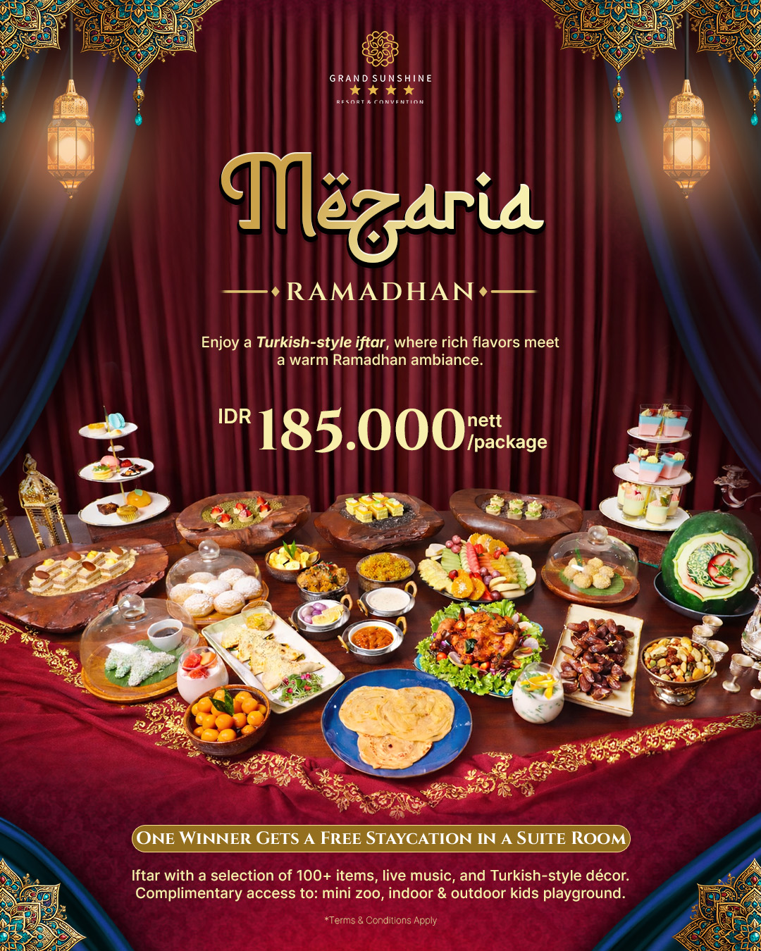 Nikmati buka puasa Turkish di hotel dengan 100+ menu pilihan, live music, dan dekorasi elegan di Grand Sunshine Resort & Convention.